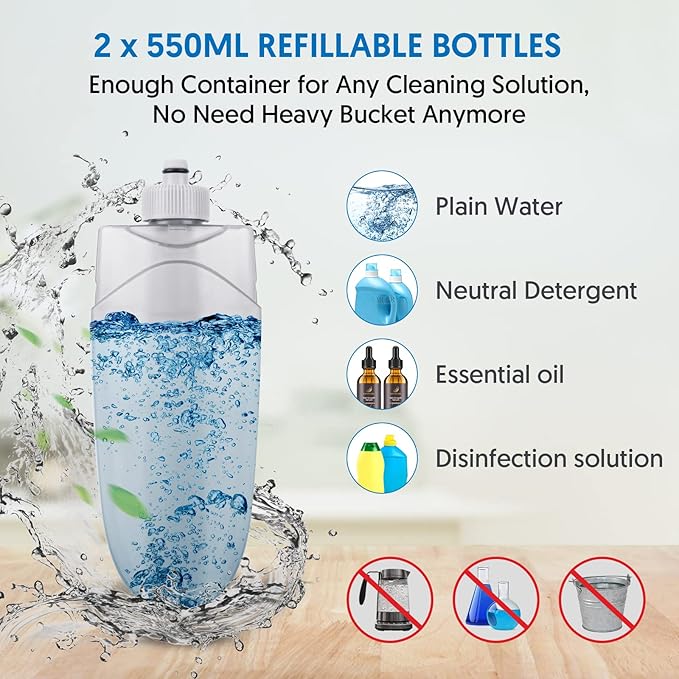 • Large Water Tank: Fill it once, clean multiple rooms in one go!